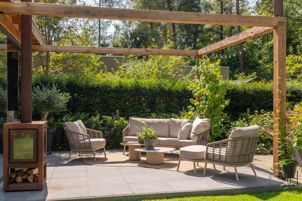 Met deze loungeset kun je een luxe en gezellige sfeer creëren, perfect voor het ontvangen van gasten of gewoon lekker ontspannen in de buitenlucht. Heb je al een specifieke plek in gedachten voor deze set, bijvoorbeeld in de schaduw of bij een vuurkorf?