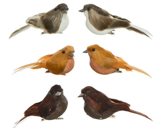 Vogel foam feather op clip 6assorti L.3.5cm x W.9cm x H.4cm