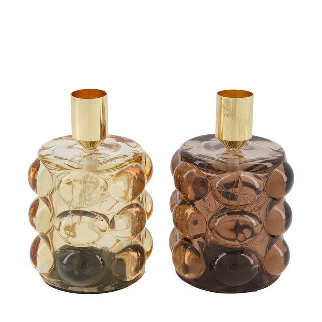 Dinner kaars houder met led glas 8.5x8.5x12.5cm assorti van 2