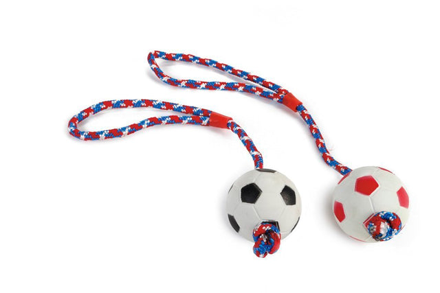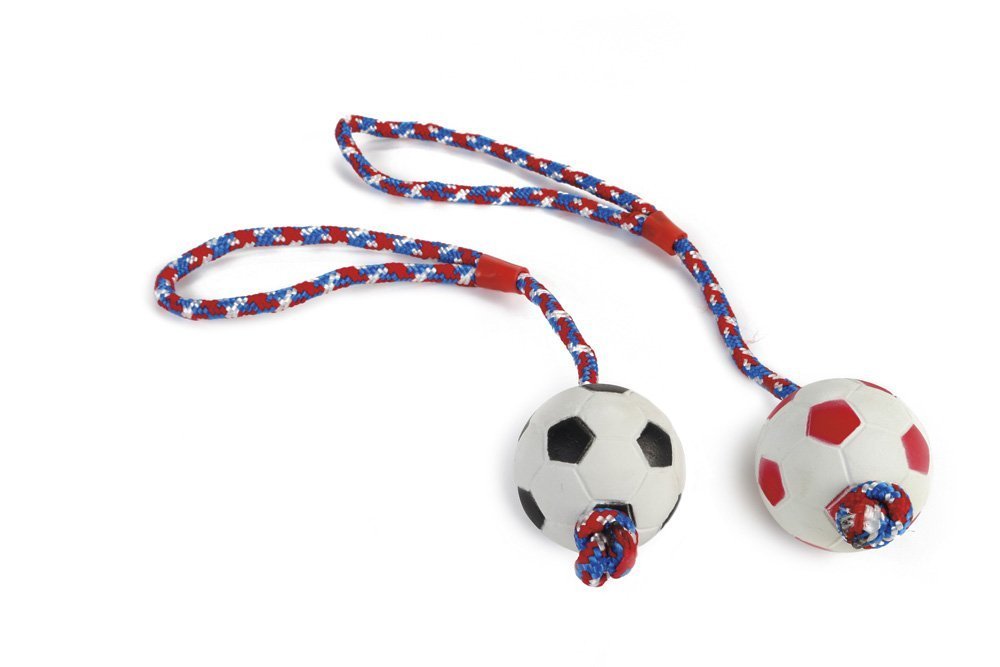 De Beeztees Sponzenbal aan koord is een leuk voetballetje dat vast zit aan een slinger. Het balletje is gemaakt van rubber en kan worden gebruikt om te apporteren. Doordat het balletje aan een koord is vastgemaakt, kun je het extra ver weg slingeren. Dit zorgt ervoor dat jouw hond verder moet rennen om de bal te halen, waardoor jouw maatje in een topconditie blijft.