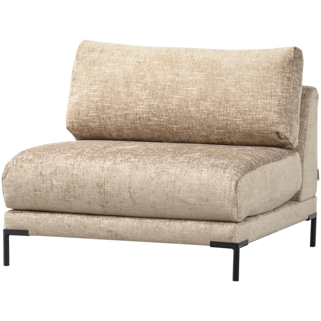 Uitbreiden, schuiven en herindelen. Met de Couple elementenserie van vtwonen creeer je een ultiem flexibele zithoek. Het stijlvolle design wordt benadrukt door de hoge, zwarte poot met een cilinder vorm. De comfortabele kussens zijn bekleed met een grof geweven stof die extra zacht aanvoelt door het mee geweven chenille. Kies uit een van de elf tijdloze kleuren/stoffen, of kies voor een combinatie van de aardse tinten om een extravagante zithoek te creeren. Plaatsen, koppelen, klaar!