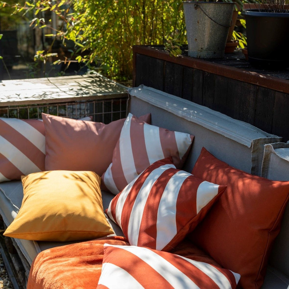 Outdoor sierkussen Santorini geeft een huiselijke sfeer aan jouw tuin! Het kussen geeft een extra mooie uitstraling aan jouw loungeset, tuinstoel of ligbed. De outdoor kussens van Dutch Decor zijn waterafstotend en uv-bestendig. Dit outdoor sierkussen met afmeting 40x60 cm in de kleur Muted Clay is een unikleur kussen en is voorzien van een rits. Met de outdoor sierkussens van Dutch Decor kun je eindeloos combineren. Outdoor sierkussen Santorini wordt geleverd met passend vulkussen.