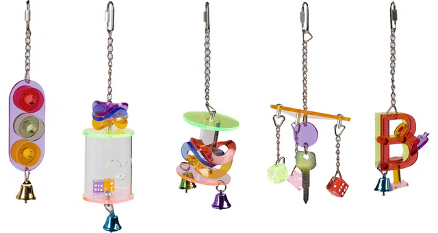 Geef jouw vogel(s) een kleurrijke verrassing met onze kooihangers! Biedt uitdaging en vermaak in de vogelkooi. Vijf varianten beschikbaar, welke je ontvangt blijft een verrassing.