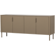 Strak, modern en functioneel. Het Gunnar dressoir van het Nederlandse interieurmerk WOOOD is een stijlvolle opberger met eindeloze mogelijkheden. Dankzij de vier deuren met subtiele greepjes berg je moeiteloos al je spullen uit het zicht, terwijl de rechte lijnen en verfijnde afwerking rust en elegantie uitstralen. Het dressoir is vervaardigd uit massief grenenhout en afgewerkt in een mudkleur. Achter de deuren bevindt zich een royaal opbergvak met een legplank, ideaal voor servies, boeken of woonaccessoires.