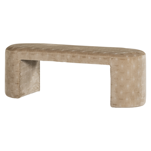 Het bankje is bekleed met de Harmony stof, een dessin stof van 100% polyester. Deze karaktervolle stof geeft het bankje een warme uitstraling en voelt prettig aan. Polyester is een sterke stof die goed bestand is tegen dagelijks gebruik. Het materiaal houdt zijn vorm goed en blijft er lang verzorgd uitzien. Door de geweven structuur heeft de stof een natuurlijke uitstraling die goed bij de naturel kleur past.