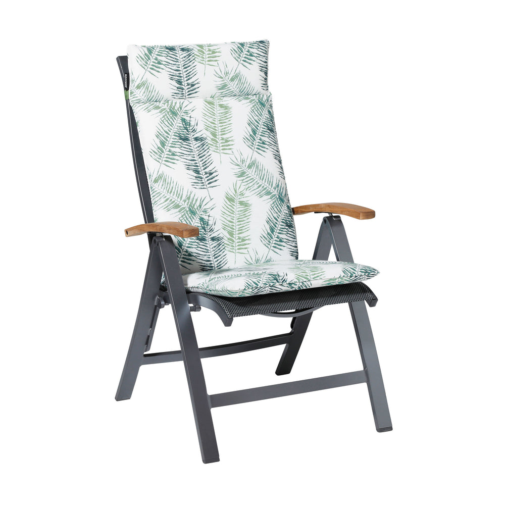 Een tuinkussen nodig voor uw houten, stalen of kunststof tuinstoel? Geef uw tuinstoel dan meer comfort en uitstraling met het nieuwe type hoge rug van Madison. Ondanks dat het kussen dunner is geworden heeft het nog steeds de kwaliteit en kracht van een dik, luxe kussen. Het model is perfect voor uw stoel met verstelbare rugleuning. Voorzien van een verstelbare band aan de achterkant en touwtjes, blijft het kussen hoog goed in de stoel zitten.