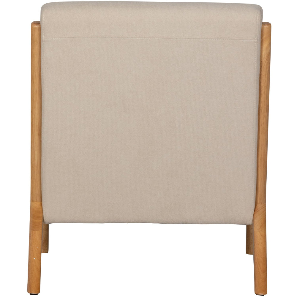 Fauteuil Mark is gestoffeerd met een geweven stof in de kleur naturel. De stof voelt zacht aan, is van een zware kwaliteit en is geschikt voor intensief gebruik. De stof is gemaakt van 100% polyester en heeft een Martindale van 20.000. De constructie van Mark is opgebouwd uit multiplex. De zitting bevat een normale schuimlaag van 24kg/m3. De rugleuning bevat een normale schuimlaag van 18kg/m3. Het losse rugkussentje is gevuld met een vulmateriaal van katoen. Het frame van de Mark fauteuil is gevormd uit Chinees rubberhout.