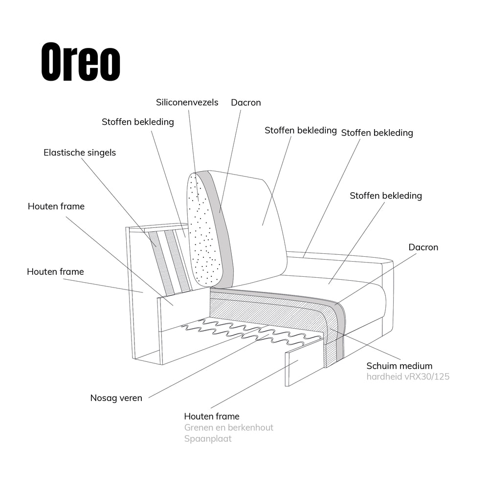 OREO met chaise longue links - Tesla 2004 is nabesteld en wordt verzonden zodra het weer op voorraad is.