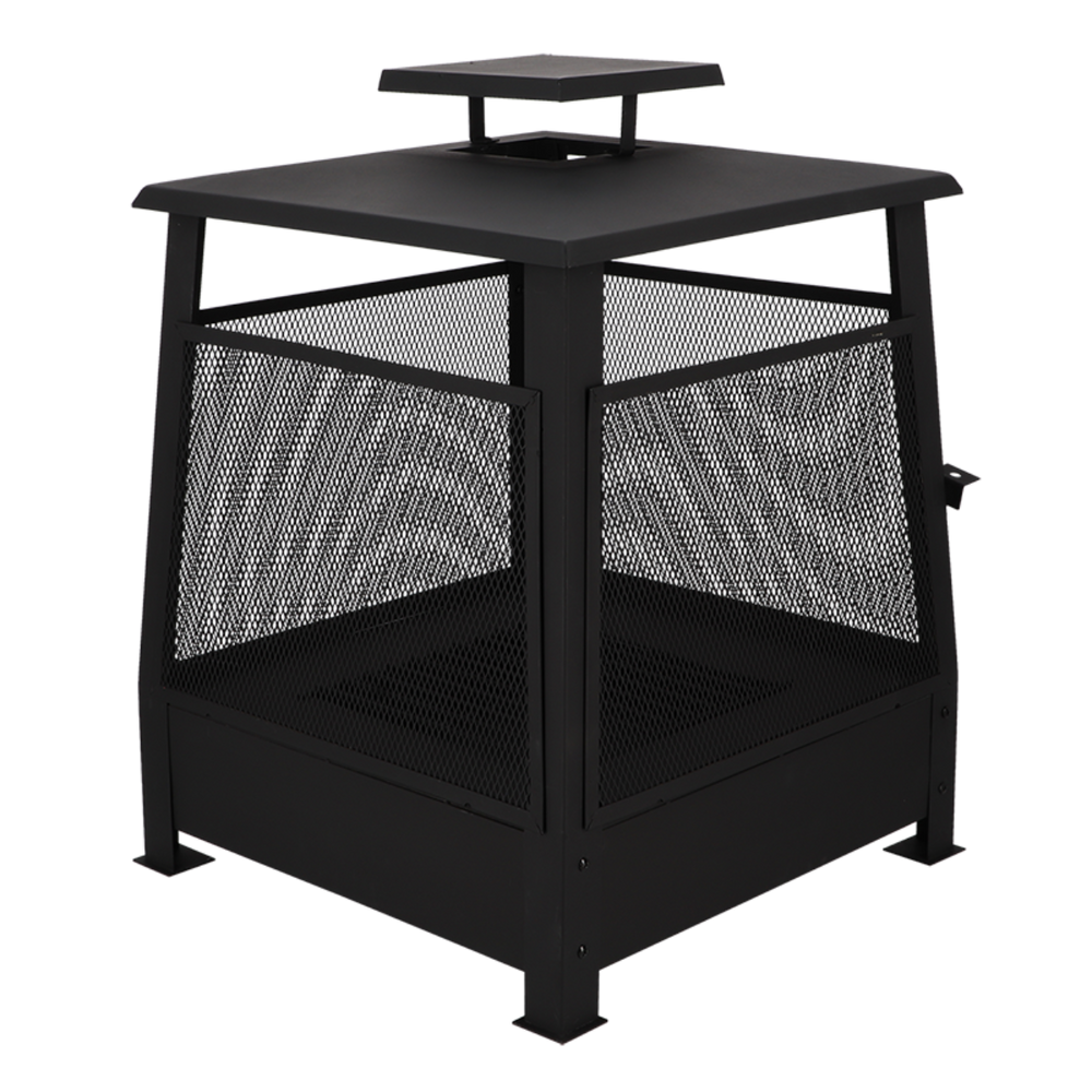 Heerlijk lang buiten zitten en genieten met deze terraskachel, die zowel warmte als sfeer in de tuin of op het terras brengt. Deze vierkante kachel heeft een sobere uitstraling en past in iedere tuin. Door de vier vaste poten staat de terrashaard stevig op de grond. De open gaasstructuur zorgt ervoor dat van alle kanten zicht is op het vuur, en de warmte zich makkelijk kan verspreiden. Het gaas voorkomt dat het hout uit de kachel kan vallen.