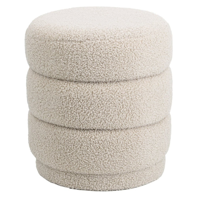 Deze heerlijk zachte poef June past in iedere ruimte. De poef June is bekleed met een volle en zachte teddystof in de kleur zand. De pootjes onder de kruk zijn van plastic.