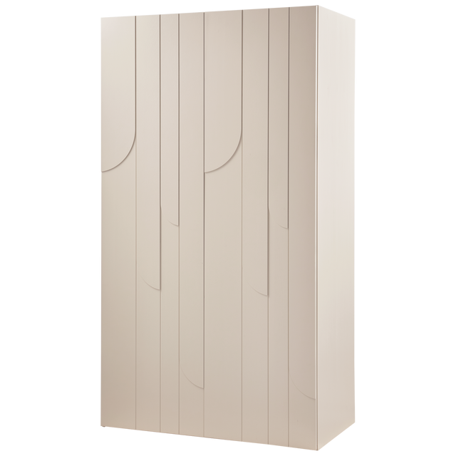 Het golvende patroon van regendruppels die langs de ramen naar beneden stromen. Dat is de inspiratiebron geweest voor het houtsnijwerk op de deuren van deze Rain 2-deurs opbergkast uit de collectie van het Nederlandse interieurmerk WOOOD. De dust kleurige afwerking houdt het ontwerp stijlvol en modern.