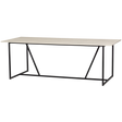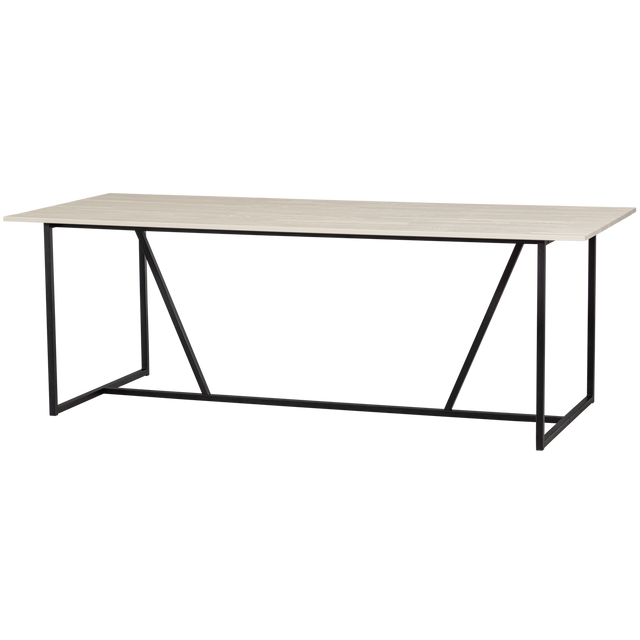 Het tafelblad is gemaakt van essenhout (vingerlas), heeft een geborstelde afwerking gekregen en is afgelakt in de kleur dust. Het onderstel is gemaakt van metaal met een matzwarte poedercoating. Essenhout is een iets zachte houtsoort met een strakke, rechte nerf. De rechte nerftekening zorgt ervoor dat essenhout goed gebogen kan worden, dit maakt essenhout zeer geschikt voor de meubelbranche. Bewerkt essenhout is sterk en slijtvast, maar onbehandeld essenhout kan veel werking vertonen en snel vergelen. Geschuurd essenhout zorgt voor een nette, gladde uitstraling. Geborsteld essen heeft meer karakter en bandgezaagd essenhout heeft een zeer robuuste en ruwe look.