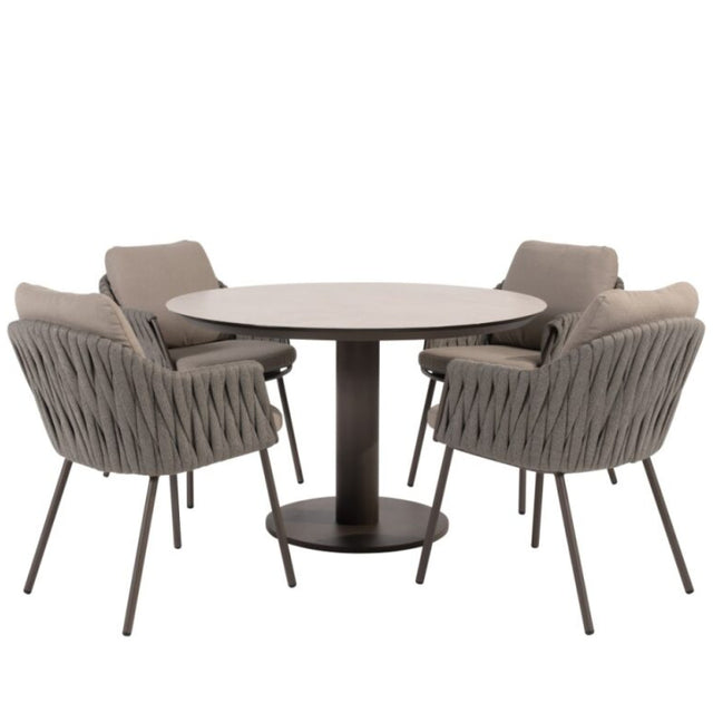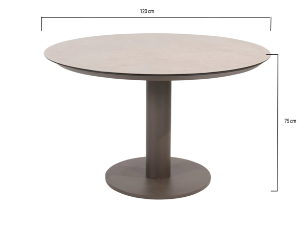 Het ronde tafelblad van printed ceramic geeft de tafel een luxe uitstraling en is tegelijkertijd zeer praktisch in gebruik. Het keramiek is krasvast, kleurvast en eenvoudig te reinigen. Met een diameter van 130 cm biedt de tafel comfortabel plaats aan vier personen. De ronde vorm zorgt voor een intieme setting, ideaal voor lange zomeravonden en gezellige diners buiten.