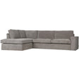 De Thomas hoekbank heeft een basic en warme uitstraling. Deze bank (met de hoek aan de rechterkant) is voorzien van een stevige polyester ribstof (Martindale 45.000) in de kleur vergrijsd groen en past goed in het interieur van nu.