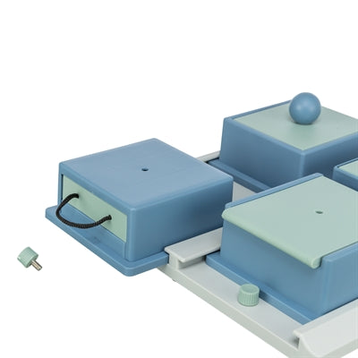 Trixie Dog Activity Poker Box 1Verstop brokjes of snacks in de vier rode bakjes. De hond zal deze ruiken, maar zal verschillende technieken moeten toepassen om bij de brokjes of snacks te komen. De vier rode bakjes kunnen namelijk ieder op een andere manier geopend worden.