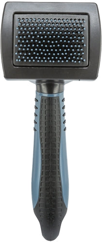 De Trixie Zachte Borstel Met Kunststofborstels En Noppen 7X16 cm is ideaal voor het verzorgen van zowel dekhaar als onderwol. De borstel is uitgerust met zachte kunststof borstels met noppen die effectief losse haren verwijderen en klitten verminderen zonder de huid van je hond te irriteren. Het kunststof handvat met rubberen coating zorgt voor een comfortabele grip en een stevige controle tijdens het borstelen. Perfect voor een zorgvuldige en effectieve vachtverzorging.