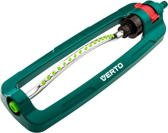 VERTO oscillerende sprinkler (ref. Nr. 15G771) is gemaakt van duurzame materialen die bestand zijn tegen zware omstandigheden. Het zorgt voor een gemakkelijke besproeiing van een oppervlak tot 378 m2. 16 sproeikoppen in metalen sprenkelstuk leiden waterstromen naar een rechthoekig gebied. Het sproeibereik kan eenvoudig worden aangepast. De set bevat een naald eventuele sproeikopjes te kunnen ontstoppen. VERTO oscillerende sprinkler (ref. Nr. 15G771) is gemaakt van duurzame materialen die bestand zijn tegen zware omstandigheden. Het zorgt voor een gemakkelijke besproeiing van een oppervlak tot 378 m2. 16 sproeikoppen in metalen sprenkelstuk leiden waterstromen naar een rechthoekig gebied. Het sproeibereik kan eenvoudig worden aangepast. De set bevat een naald eventuele sproeikopjes te kunnen ontstoppen. VERTO Zwenksproeier, 378m2 Bereik, 16 Nozzels.