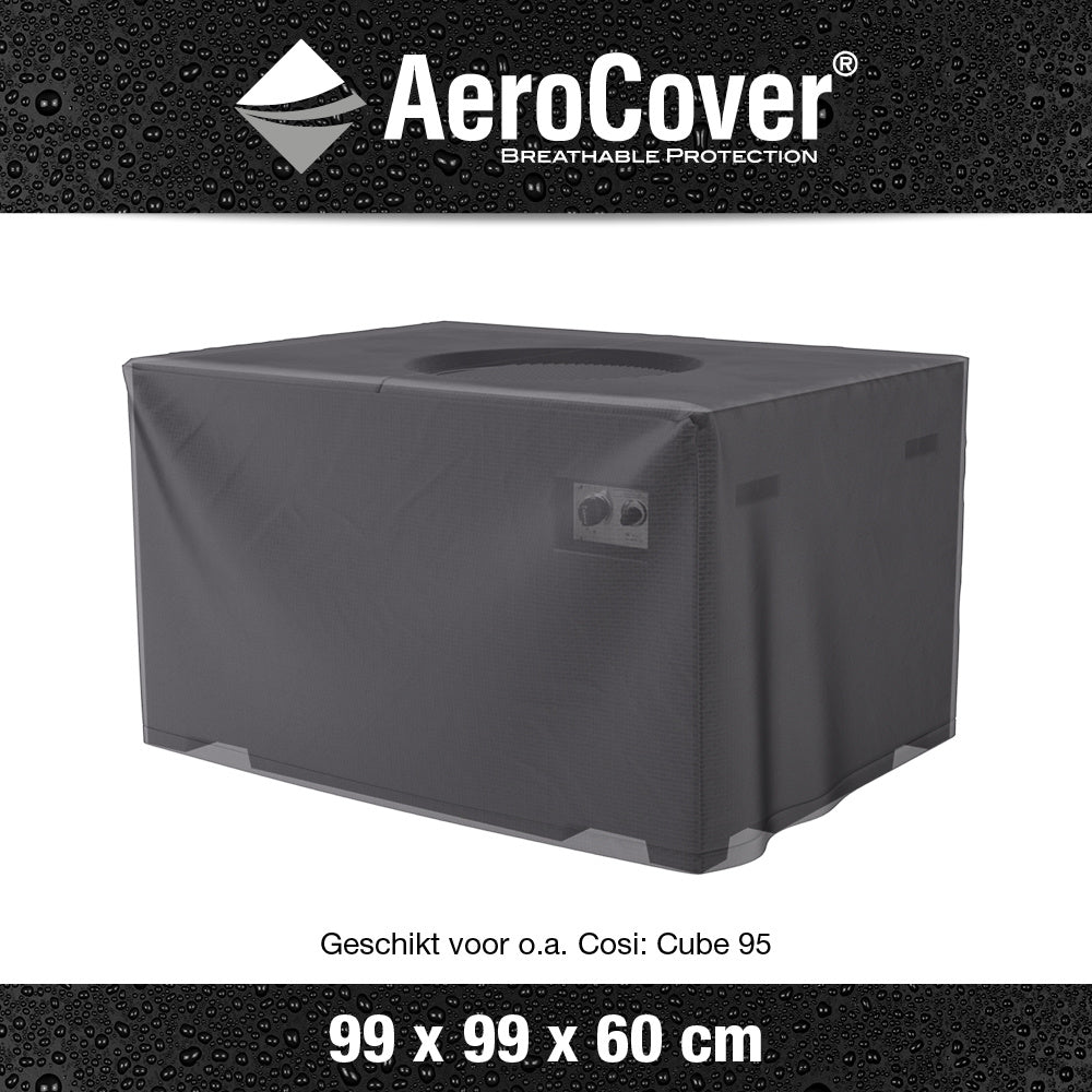 Vuurtafelhoes van AeroCover. Ademende hoes voor vuurtafels 99x99xH60cm. AeroCover hoezen zijn ademend, waterbestendig, reduceren condensvorming en gaan roestvorming tegen. De stof heeft een hoge kleurechtheid dankzij de door en door geverfde vezels. Een AeroCover vuurtafel hoes verlengt de levensduur van uw vuurtafel. AeroCover stoffen zijn 100% waterdicht, de naden zijn, net als elke ander hoes, spatwaterdicht. O.a. geschikt voor Cosi Cube 95.