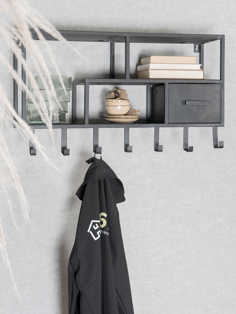 Wandkast - Kapstok Huub Zwart Mangohout - Rechts is nabesteld en wordt verzonden zodra het weer op voorraad is.